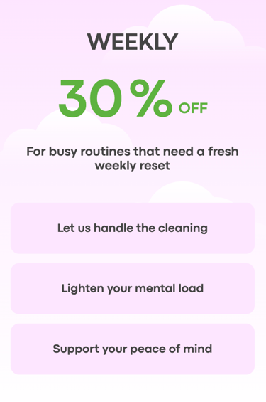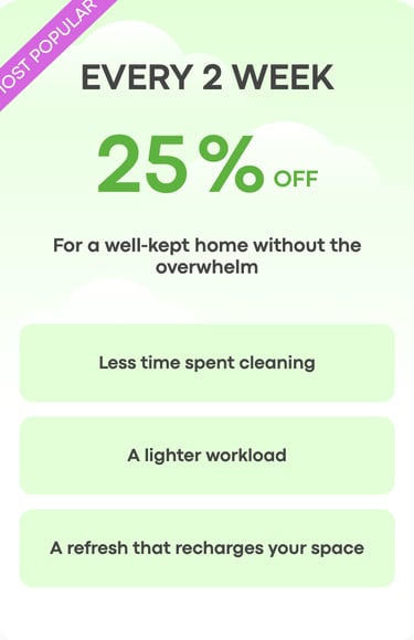 Perfect for busy lives that need a reliable refresh. We tackle dusting, vacuuming, mopping floors, wiping surfaces, and sanitizing kitchens and bathrooms, leaving every room sparkling and stress-free